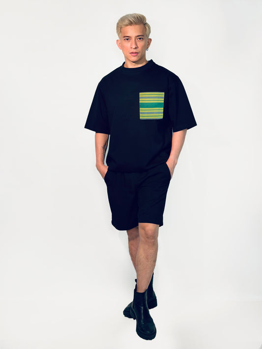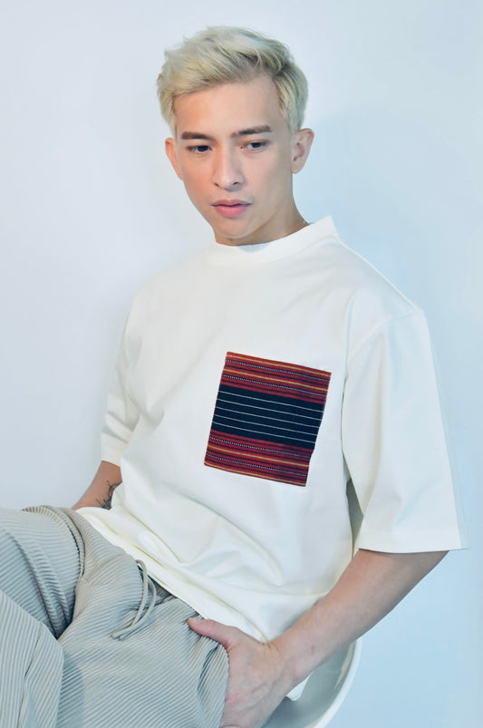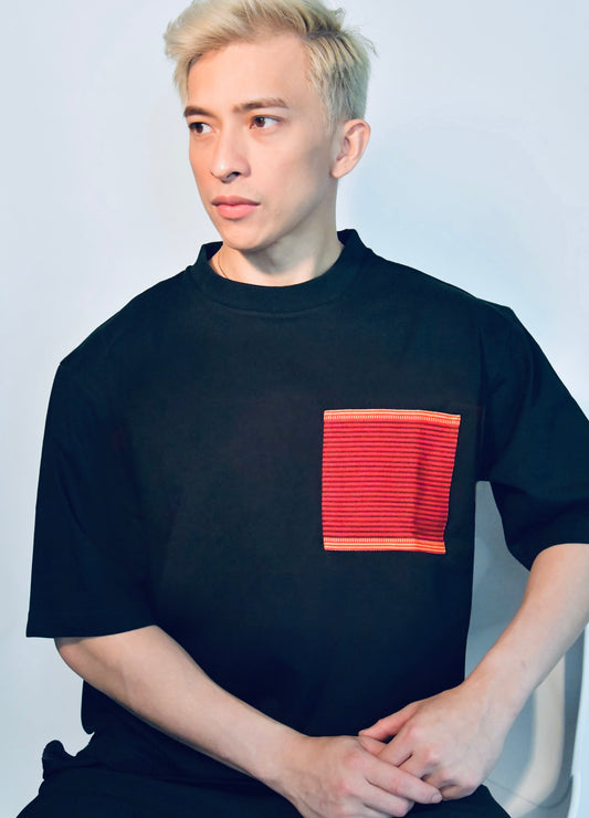Available in a crisp Beige and Black base, each tee is accented with different Colorful Patterned Pocket — a subtle statement that adds personality without overpowering.